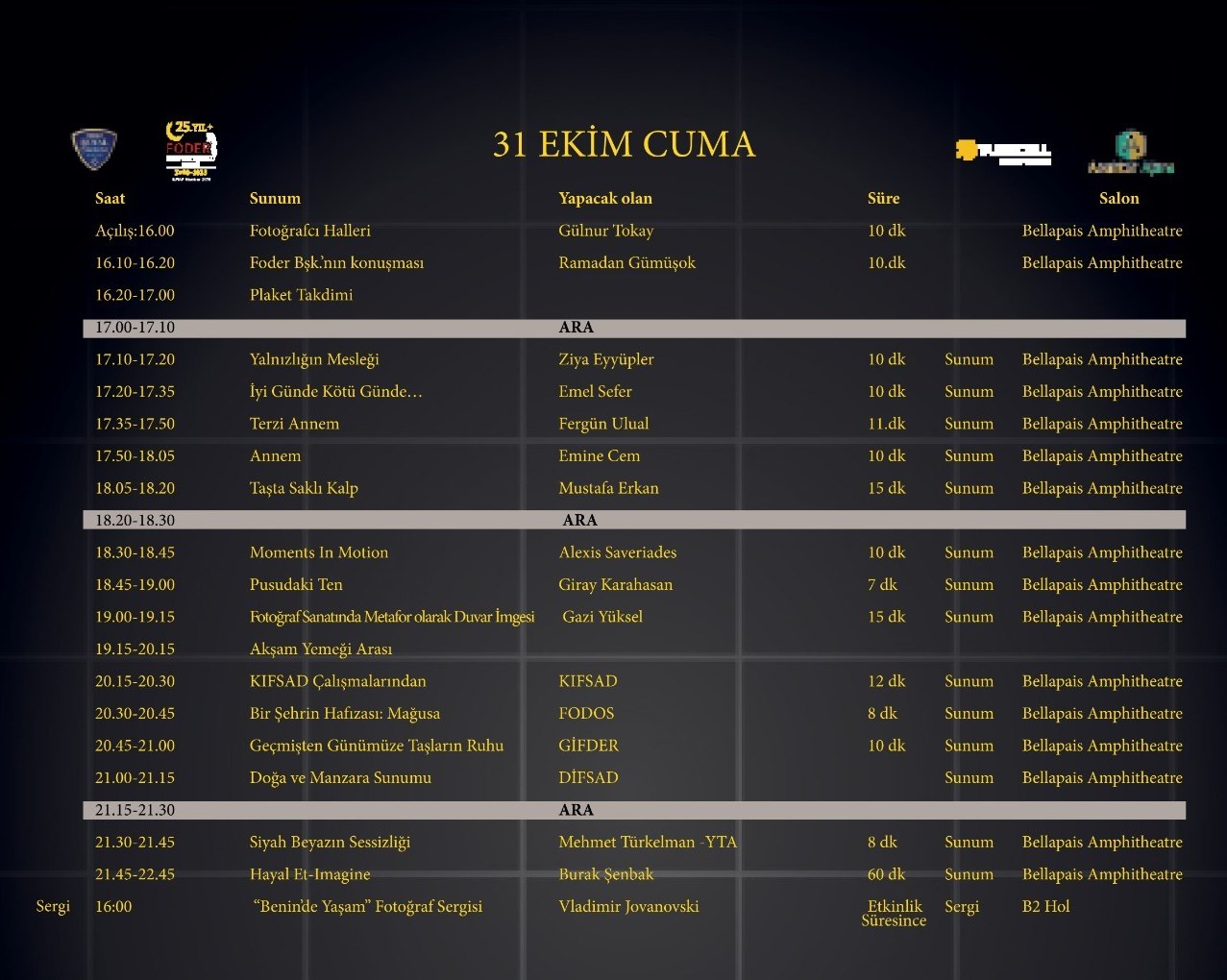 FODER 25. Yıl “KIBRIS FOTOĞRAF GÜNLERİ” Takvimi